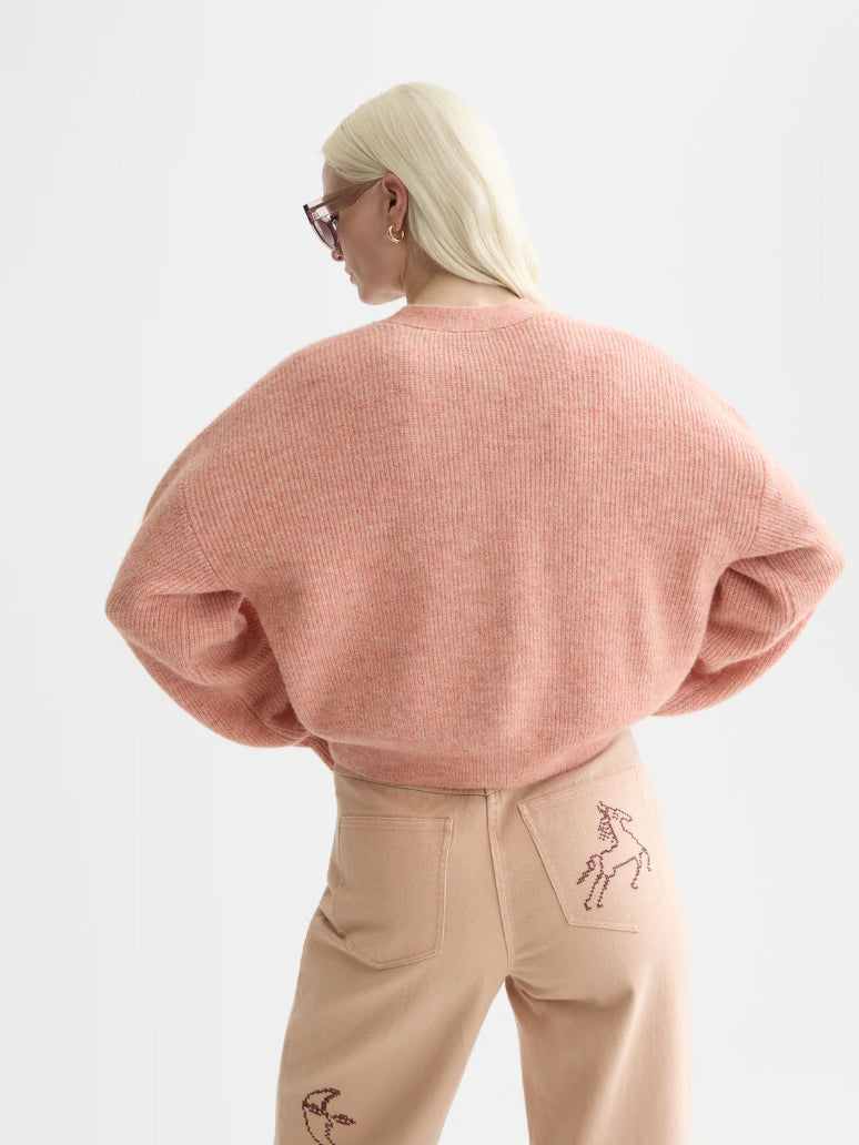 This relaxed-fit cardigan in a fuzzy knit, offers warmth with an effortlessly laid-back feel.