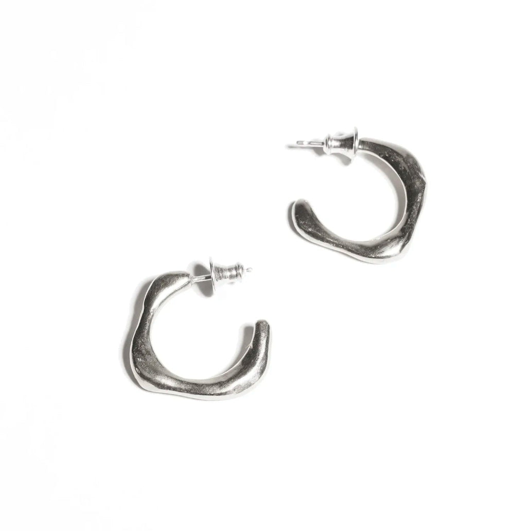 Sculptural hoop earrings, hand-formed from wax before being cast in recycled Brass and Sterling Silver. Sold as a pair.
